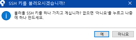 여기 서는 SSH키를 가지고 있지 않으니 '아니요'를 선택합니다.