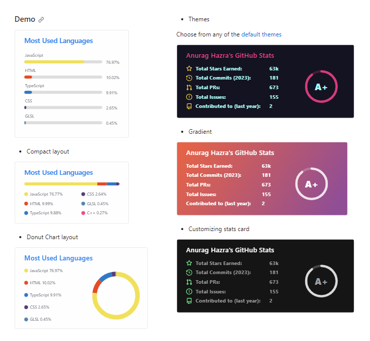 :zap: Dynamically generated stats for your github readmes - GitHub - anuraghazra/github-readme-stats: :zap: Dynamically generated stats for your github readmes