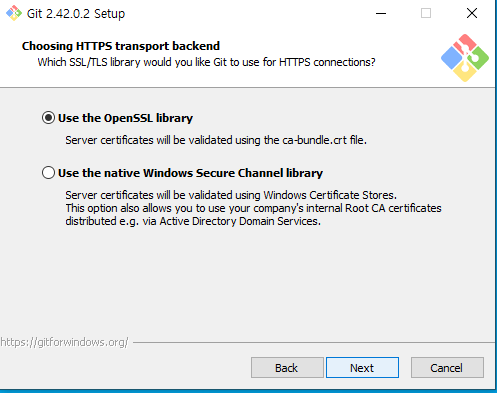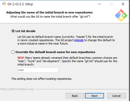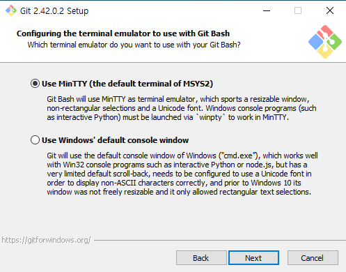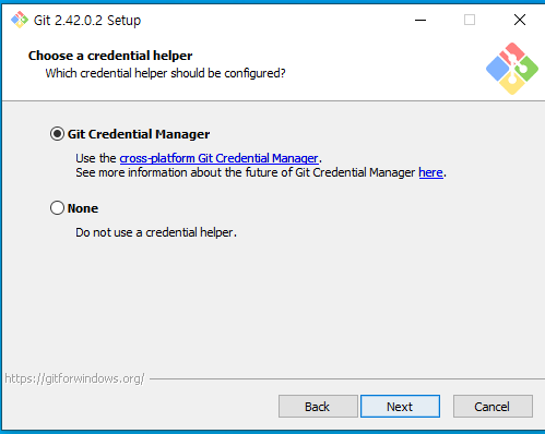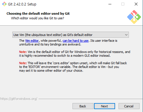 깃의 에디터를 설정하는 거라고 하는데 그냥 기본을 사용하기로 하고 Next를 누른다.