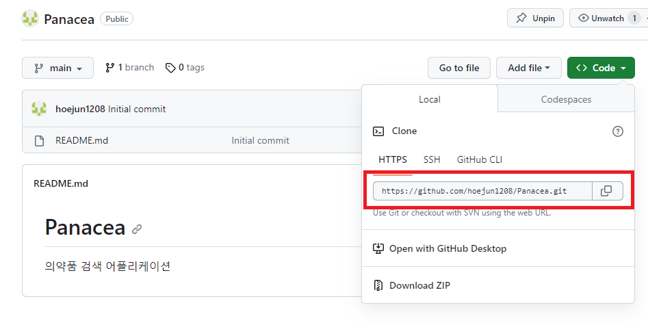 이때 나의 repositories 이름은 굳이 팀프로젝트와 동일할 필요 없이 내가 쓰고 싶은 이름으로 적어도 된다.