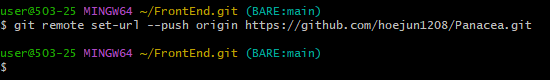 그다음 복사할 나의 레퍼지토리 주소를 복사하고 아래와 같이 작성한다.