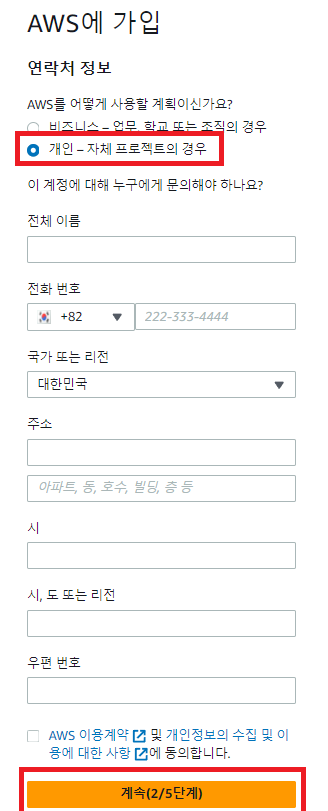 개인 프로젝트에 사용될 것이기 때문에 개인을 선택하여 준다.