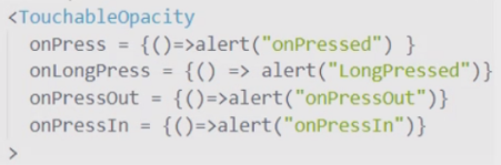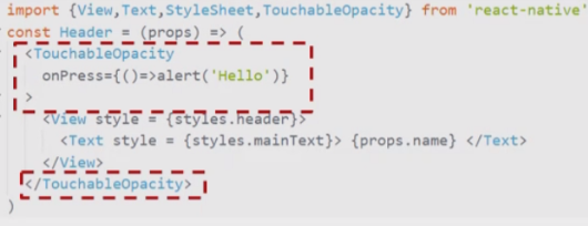 TochableOpacity는 react-native에서 import하여 사용하며 클릭에 대한 이벤트를 넣고 싶은 컴포넌트를 위 사진처럼 감싸면 된다.