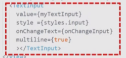 화면에 보여줄 값을 value에 적고 값을 입력받기 위해 onChangeText를 쓰며, 여러 줄을 사용할때 multiline을 사용한다.